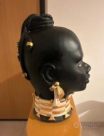 Testa di Moro in ceramica prodotta da Verus, specificamente un modello ispirato alla tribù Masai con finiture in nero e oro.