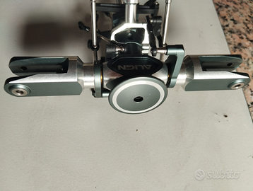 Testa per T-rex 600 Align versione flybar. L'asta flybar non è presente. sono inclusi tutti gli altri pezzi ricambi in foto.