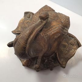 Testa Ganesh elefante. Scultura da parete. Bronzo. Peso: 1,9 kg. Misure: 18 x 19 cm.