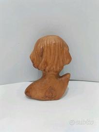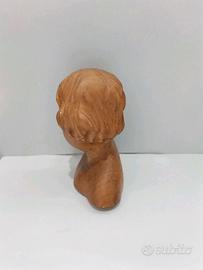 Testa in legno, scultura a mezzo busto. L'oggetto è firmato.