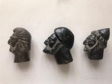 Riproduzione di tre teste di statue dell' antica Grecia- materiale pietra dura piena - lavorazione a mano- acquistate nei primi anni '80 a Skiatos-misure:8/9 cm.