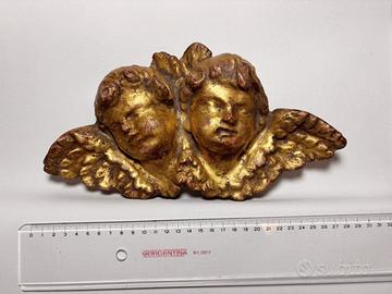 2 ) Cherubini in legno intagliato e dorato della fine del XVIII secolo . L'intaglio è sul legno di abete e la scultura è priva di gancio . Dimensioni Max 29cm x15 cm (h)