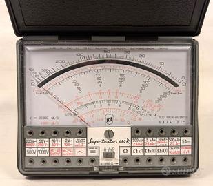 Classico tester degli anni '70 per misure elettriche (Tensioni AC / CC e Resistenze). Componente usato in laboratorio, ora è un pezzo da collezione. Funziona correttamente. Ha due difetti come mostrato nella foto: una ammaccatura nello sportello portapuntali (posteriore) ed ho perso una delle punte finali dei suoi puntali (il rosso). Spedizione in tutta Italia gestita da Subito.