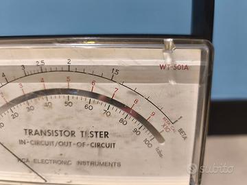The product is a vintage RCA WT-501A Transistor Tester, made in the United States. It is an analog transistor tester and comes as a single unit. This item has a Little damage on the display, ypu could see It in the last photo
