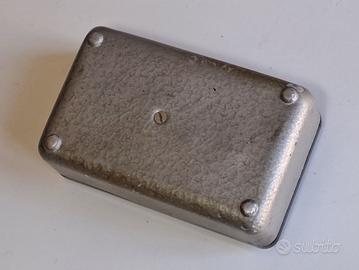 Con corpo in bachelite con stampato il marchio di fabbrica e modello , e fondo in metallo verniciato con effetto martellato.