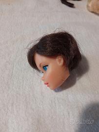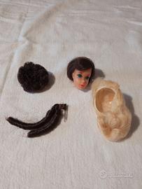 Testina di Barbie mora degli anni 60/70, con tre acconciature, come da foto. La testina è stata usata e presente lievi segni di usura, mentre le acconciature sono in ottime condizioni