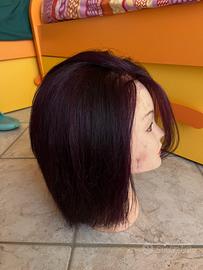 testina professionale con capelli veri colore castano viola con taglio scalato supporto per testina incluso prezzo trattabile