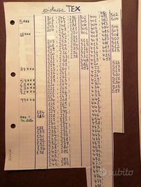 Disponibili ca. 200 numeri di Tex Willer – IIa serie Gigante (è la serie tutt’ora in edicola nei primi giorni del mese a € 5,80). • Dei primi 80 albi, dispongo ancora di 8 nr. (vedi foto), tutti a tre stelle. Sono in buone/discrete condizioni. • Dal nr. 184 al nr. 597 sono disponibili ancora 190 albi in prima edizione, come nuovi (cioè letti e messi in libreria). • Vedi foto con “ELENCO esistenza TEX” dei numeri disponibili. • Vendo a € 1 cad. • Possibilità spedizione; altrimenti ritiro a mano a Milano Sud (zona Famagosta).