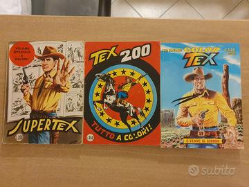 Vendo collezione originaleTex in condizioni da edicola dal n.70 ad oggi. Completa di serie Tex Willer, speciali Tex Willer, Texoni, Maxitex, Almanacchi, Color Tex, Striscie anastatiche e raccoglitori dei primi 15 numeri Tex, Vari albi e gadget fuori serie. Ideale x chi vuole costruirsi la propria collezione