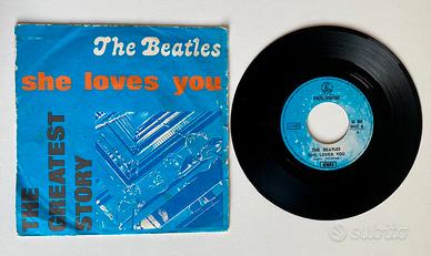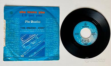 Vendo un 45 giri dei Beatles con “She loves you” e “I’ll get you” etichetta EMI usato, in condizioni discrete come da foto. Vendo assieme la sola copertina del 45 giri “Don’t let me down” e “Get Back” in buone condizioni come da foto; purtroppo manca il disco. Solo spedizione. Per ricerca: anni 60/70 beat pop uk london vintage