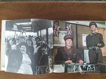 copertina a colori apribile in cartone con due 45 giri inseriti uno per ogni lato e al centro un folder con le foto a colori del tour.