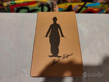 L’intero pacchetto è custodito in una scatola marrone, con l’immagine inconfondibile di Chaplin che campeggia frontalmente.