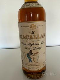 Vendesi rara bottiglia da collezione di Whisky Single Malt "The Macallan" 7 anni, selezione speciale Armando Giovinetti. • Dettagli: Versione leggendaria per il mercato italiano (importatore Giovinetti & Figli - Milano). • Invecchiamento: 7 anni in botti di Sherry (Matured in Sherry Wood). • Stato: Bottiglia sigillata con sigillo fiscale originale (Stato Italiano). Etichette in eccellenti condizioni. Livello del liquido perfetto nel collo della bottiglia. • Note: La vendita non comprende la scatola originale. Perfetta per collezionisti di whisky vintage o come collezione. L'oggetto viene venduto nelle condizioni in cui si trova (visto e piaciuto). La vendita è consentita solo a persone maggiorenni.