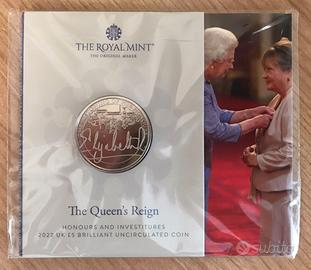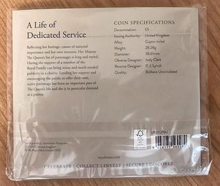COLLEZIONE COMPLETA DI 3 MONETE DA 5 POUNT COMMEMORATIVE PER IL REGNARE DELLA REGINA ELISABETTA.