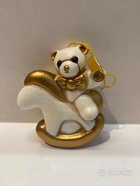 Teddy sul cavallo a dondolo, color avorio e oro.