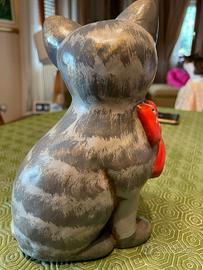 Thun gatto Lexi di Lene Thun di vecchia manifattura con fiocco rosso ed occhi verdi aperti h 20cm, da collezione molto raro