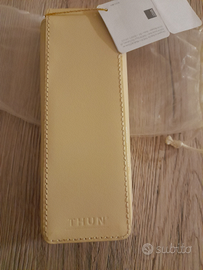 Portapenne Thun color panna in pelle con chiusura a calamita del 2012. Nuovo con tagliando come da foto. Misure: 16×5,3×3,3