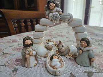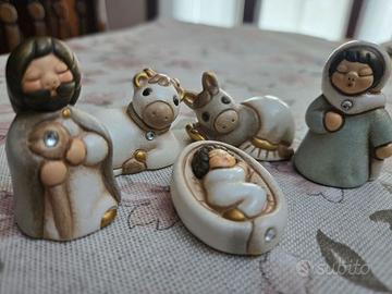 Thun collezione Presepe della Famiglia. 6 pezzi composti da Maria Giuseppe Gesù bue asinello e arco con angelo. Edizione caratterizzata dall inserimento di brillantini nelle statuine. Molto bello . Condizioni impeccabili.