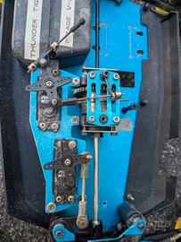 Telaio Buggy 1:8 Thunder Tiger Mirage V-Spec + Radio Descrizione: Vendo splendido telaio buggy professionale scala 1:8 in alluminio. Meccanica completa e robusta. Inclusi nel prezzo: radiocomando, ricevente e due servocomandi già installati. Ottima base per conversione elettrica (brushless) o restauro a scoppio. Condizioni come da foto completa di servo e radiocomando