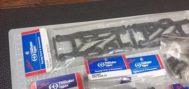 Thunder Tiger, il modello ST1-PRO. Il modello e' accessoriato con numerosi parti in carbonio (tra cui delle robustissime torrette ammortizzatori) e parti di ricambio/optionals. In particolare si puo' installare un simpatico cambio a due marce per il bashing piu' estremo! Da revisionare per la prima accensione, in particolare il motore si presenta con una camera di scoppio in perfetto stato ed un'ottima compressione, ma deve essere smontato, pulito e rimontato. Non e' presente elettronica, serve un filtro dell'aria nuovo. Compreso nel prezzo Secondo set Carbonio NIB Secondo treno di gomme pista PROLINE Cassetta avviamento PECEDENZA RITIRO A MANO, SPEDIZIONE DA CONCORDARE
