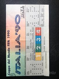 Biglietto originale partita inaugurale del Mondiali di calcio ITALIA 90 - partita ARGENTINA contro CAMERUN disputatasi a Milano allo stadio San Siro G. Meazza il giorno 8 giugno 1990 - biglietto in condizioni perfette conservato in modo impeccabile - un cimelio evocativo molto raro da custodire da parte di collezionisti ed appassionati - biglietto introvabile ad un prezzo cosi basso e scontato come questo