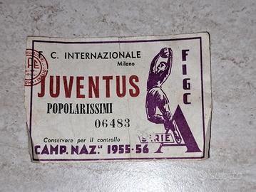 vendo usato come da foto vecchio e raro ticket ingresso stadio partita Inter vr Juventus valida per il campionato nazionale di serie a 1955 1956