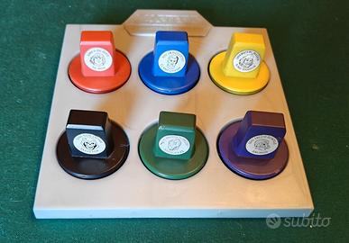 RARO VINTAGE 6 TIMBRINI ORIGINALI ANNO 1985, CON ESPOSITORE PORTA TIMBRI “MOTU - MASTERS OF THE UNIVERSE”