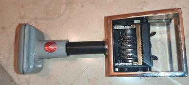 Timbro datario e denominazione attività commerciale autoinchiostrante professionale utilizzato in farmacia per marcare i prodotti con una data, spesso la data di scadenza o di confezionamento.