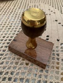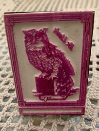 Timbro Ex-Libris con immagine civetta, perfetto stato, in confezione originale integra. Base in legno e manico in legno e ottone, realizzazione artigianale (Cartoleria Pantheon Roma) Misure del timbro 40x60 mm