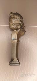 L'impugnatura, ottenuta di fusione in pezzo unico con il sigillo, raffigura la dea bendata ed é di gradevole fattura.