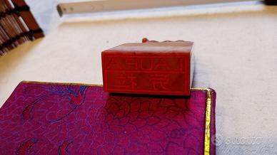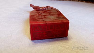 timbro vintage cinese a forma di cavallo, Laura, in foto la pietra sembra rossa, ma è più sul marrone