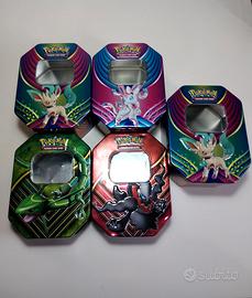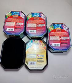 Tin vuote dell'era sole e luna tranne la mini tin di espeon di evoluzioni prismatiche sempre vuota.