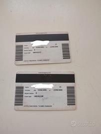 TITOLO: Coppia di Costa Card Nave Costa Concordia (Anno 2009) - Cimelio da Collezione DESCRIZIONE: In vendita lotto esclusivo composto da2 tessere magnetiche (Costa Card)originali della naveCosta Concordia, risalenti all'anno2009. Queste tessere rappresentano un autentico pezzo di storia navale, utilizzate all'epoca come chiavi per le cabine, documenti di riconoscimento e carta di pagamento a bordo durante la navigazione. Caratteristiche del lotto: Oggetto:2 Costa Card originali (Lotto completo). Nave:Costa Concordia (operativa dal 2006 al 2012). Anno:2009. Design:Grafica d'epoca con immagine della nave, loghi Costa Crociere e decorazioni originali. Stato:Ottime condizioni di conservazione, come visibile in foto. Perfette per collezionisti dimemorabiliadelle navi da crociera o appassionati di storia della marina mercantile. PREZZO:200 € (per entrambe le tessere) SPEDIZIONE: Disponibile spedizione tracciata in tutta Italia o ritiro a mano in zona.
