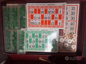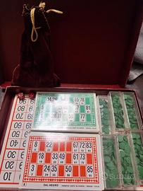 tabellone , numeri, tabelle,pedine con sacchetto in velluto come da foto