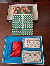 Splendido gioco della Tombola vintage denominato "Tombola Week-end", prodotto dalla storica Edizione Marca Stella (Milano). Un vero pezzo da collezione per gli amanti dei giochi da tavolo classici e del design grafico italiano anni '80. Il set è completo di tabellone numerato, sacchetto rosso originale con numeri in legno e un set di 48 cartelle illustrate con paesaggi vintage. ✨ Condizioni: Ottime, scatola originale ben conservata con segni minimi del tempo. 📦 Contenuto: Tabellone 1-90, sacchetto con pedine in legno, 48 cartelle illustrate. 🎨 Caratteristica: Grafica retrò tipica del periodo.