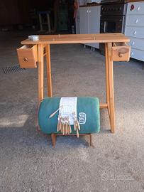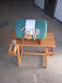 Tombolo con mobile con 2 cassetti. Il tombolo può essere staccato dal supporto. 12 fuselli / spilli .