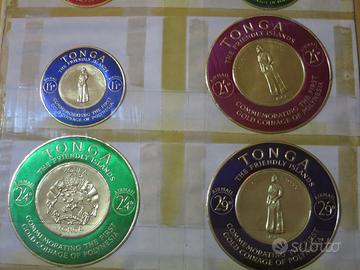 Monete Tonga 1962 e 1963 the friendy island incorniciate su francobolli posta aerea.