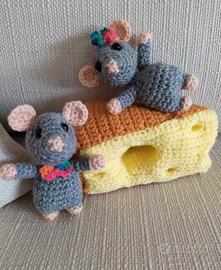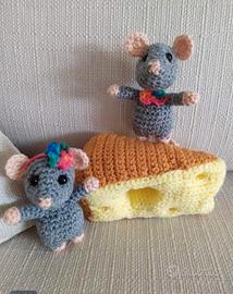 Topi nel formaggio. Altezza 11cm , Lunghezza formaggio 15cm.