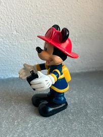Personaggio Topolino in versione pompiere, originale Disney, ideale per collezionisti di personaggi Disney o appassionati di gadget vintage.