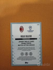 Carta originale Topps Match Attax 2024/25 – Jersey Relic dedicata a Noah Okafor dell’AC Milan. La card contiene pezzo di maglia indossata dal giocatore, autenticata da Topps (player‑worn memorabilia). Condizioni perfette, sempre tenuta in sleeve. Ideale per collezionisti Milan, Champions League o set Match Attax ✔️ Prodotto ufficiale Topps ✔️ Jersey Relic indossata ✔️ Spedizione protetta e sicura ✔️ Disponibili altre relic UCL