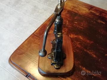 Torchietto primi anni del 1900 in ghisa e ottone, posizionato su base in legno in buone condizioni e funzionante Dim 21 x 16 H 25 PesoKg 2,5