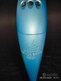Torcia ORIGINALE dei XX Giochi Olipici invernali di Torino 2006 prodotta e firmata da PININFARINA ,conservata perfettamente, utilizzata solo da un tedoforo in cerimonia di apertura e numerata,molto rara,(solo 2000 pezzi).Poi mai più utilizzata. Completa del suo piedistallo ORIGINALE e ovviamente firmato, Articolo raro e da collezione!!