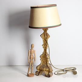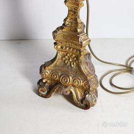 Torciere Neobarocco in legno intagliato laccato e dorato. Trasformato a lampada.