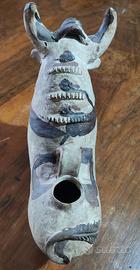 Trattasi di un "Piccolo Toro di Pucara", terracotta cerimoniale non smaltata esempio di ceramica precolombiana, decorata con ingobbio ocra e terra d'ombra prodotta in Pucara (famosa per le sue ceramiche), Provincia di Lampa, Perù , negli anni '20 circa.