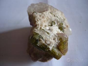 La tormalina è un borosilicato e in base ai componenti all'interno assume le varie tonalità delle quali un po' alla volta vi sto parlando. Può avere cristalli striati verticalmente, lunghi e sottili, oppure possono essere spessi. Tra le tormaline verdi troviamo anche la bellissima tormalina anguria. Si chiama così perché la parte fuori è verde mentre quella intera è rosa. Un oligoelemento, il cromo, che dà il nome a pietre di un verde intenso che si trovano in Tanzania, sebbene il colore in questo caso sia dato anche dalla presenza di vanadio. Un blu di eccezionale saturazione, lucentezza e purezza è quello della rarissima tormalina Indicolite.