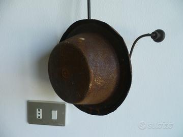 Vendo vecchia padella tostatrice manuale, per caffè e cereali, con impugnatura sul manico in legno, leva girevole con pomello in legno, sportellino apribile sul coperchio, epoca prima metà del 900, misura in lunghezza cm. 55 e il diametro cm. 24, utensili da cucina in buone condizioni di conservazione, presenta segni di ossidazione.