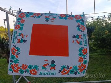 tovaglia vintage da bar dei gelati sanson. ha qualche imperfezione da come si può vedere dalle foto.posdo spedire. valuto offerte