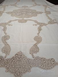 Tovaglia in lino ricamata a mano cm.285x175 e con bordo in pizzo di Cantu' con 12 tovaglioli cm.22x22 e 5 da cm.40 Euro 500. Altra tovaglia cm.260x180 in organza con ricami floreali bianchi e bordo di pizzo ad uncinetto filet con tovaglioli cm.45x45 Euro 400. Copriletto antico Lino e pizzo Cantù cm.280x250 Euro 600. Solo ritiro a mano.