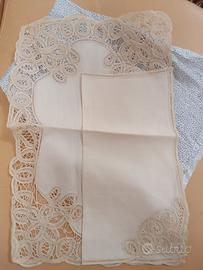 Tovaglietta singola con tovagliolo in puro lino nuova mai usata nella busta originale proveniente da Bruxelles lavorata al tombolo.