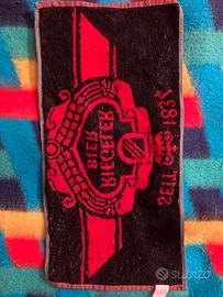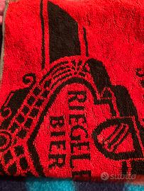 L'oggetto nell'immagine è una tovaglietta in spugna pubblicitaria vintage del marchio di birra tedesco Riegeler Bier. +1 Questo tipo di accessorio veniva comunemente utilizzato nei bar e nei pub tra gli anni '70 e '80 per proteggere il bancone e assorbire la condensa dei boccali. +1 Dettagli sul Marchio Nome: Riegeler Bier, originario di Riegel am Kaiserstuhl, in Germania. Fondazione: Il marchio vanta una tradizione che risale al 1834, anno in cui Sylvester Meyer ottenne il diritto di produrre birra a Riegel. Lo slogan visibile sulla tovaglietta, "Seit 1834" (Dal 1834), sottolinea questa eredità. Stato attuale: Sebbene la produzione sia cessata nello storico castello-birrificio di Riegel (trasformato oggi in loft), il marchio continua a esistere ed è attualmente prodotto dalla birreria Fürstenberg a Donaueschingen. Badische Zeitung Badische Zeitung +4 Caratteristiche dell'Oggetto La tovaglietta presenta il logo classico del brand: uno scudo con i colori dello stemma di Riegel, sormontato da una corona. È un articolo ricercato dai collezionisti di oggettistica da bar (barware) e memorabilia vintage legata al mondo della birra.